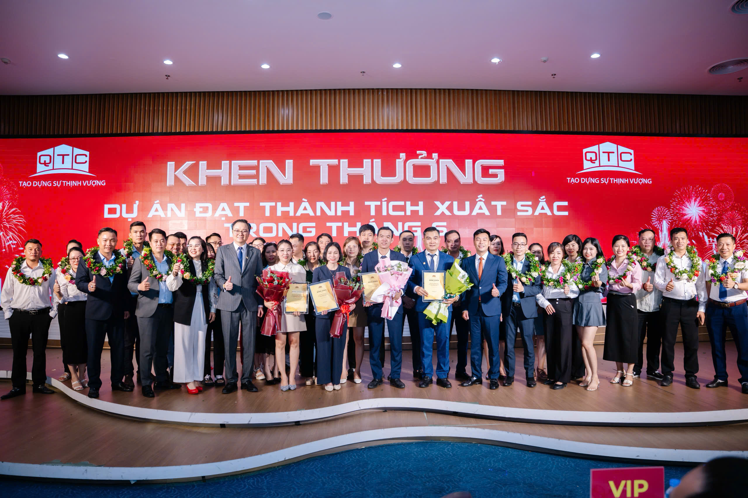 🎉 Mở màn buổi lễ chính là khoảnh khắc vinh danh, trao thưởng cho các cá nhân và lãnh đạo xuất sắc nhất của từng Dự án. Xin chúc mừng các “chiến binh” đã nỗ lực hết mình và đóng góp cho sự thành công của công ty trong thời gian qua. Đây chính là niềm tự hào và là nguồn cảm hứng lớn lao của đại gia đình QTC Land!